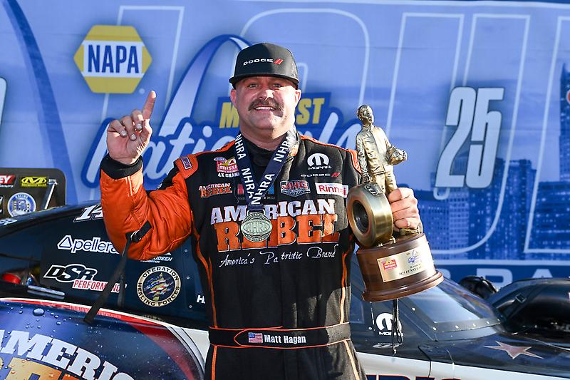 Matt Hagan recorded his 54th career NHRA Funny Car win with an impressive barrage of 3.90 runs at the NHRA Midwest Nationals this weekend.