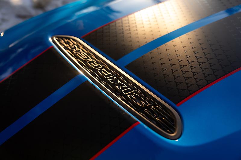 SIXPACK-powered Dodge Charger models feature a carbon-styled engine cover stamped with a red-accented SIXPACK text logo that announces the p…