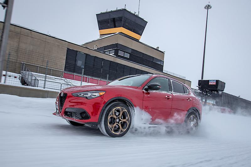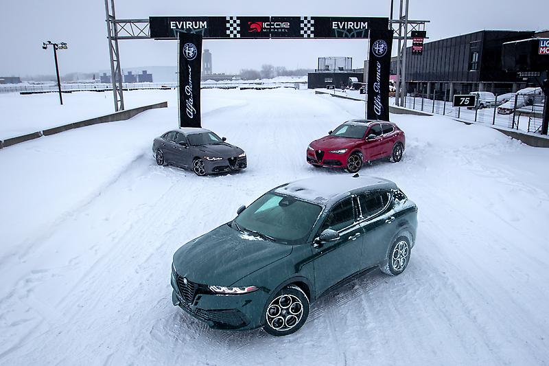2026 Alfa Romeo Winter Drive: (clockwise, L to R) Alfa Romeo Giulia, Alfa Romeo Stelvio, Alfa Romeo Tonale
