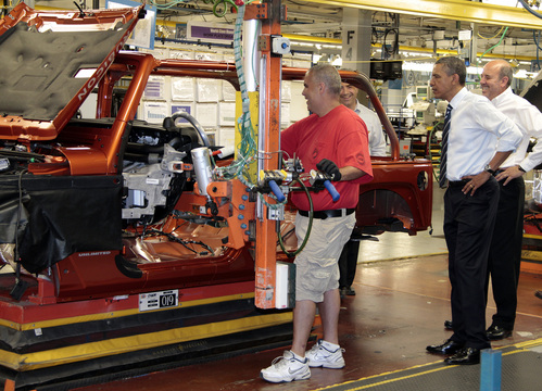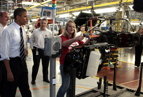 President Obama acknowledged employees during his visit to Chrysler Group’s Toledo Assembly Complex, home of the iconic Jeep Wrangler,…