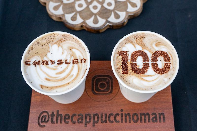 Custom espresso drinks marking the Chrysler brand’s 100th birthday.