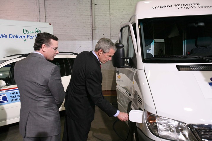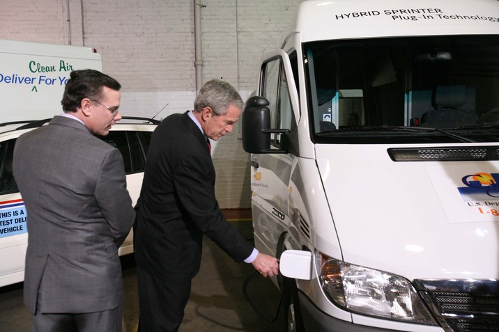President Bush gets hands-on experience with Dodge Sprinter plug-in hybrid with Mark Chernoby, Vice President - Advance Vehicle Engineering,…