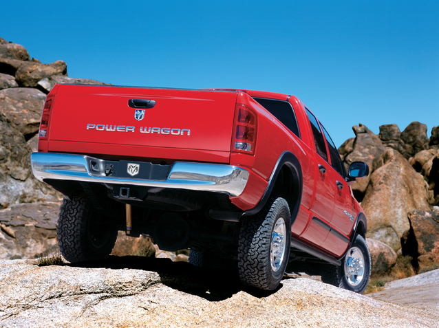 Download Print Press Kit: 2005 Dodge Ram Power Wagon Legendary Dodge Ram Power Wagon Returns Auburn Hills September 30, 2004 - The only pickup for severe off-road work conditions Best-in-class off-road performance HEMI® power The most capable off-road pickup ever created The big, bad Dodge Ram Power Wagon is back. After nearly 25 years, Dodge's legendary 4x4 icon - the Dodge Ram Power Wagon - returns as the most capable off-road production pickup truck ever created. The all-new 2005 Dodge Ram Power Wagon is reborn with class-exclusive electric-locking front and rear differentials, a class-exclusive electronic disconnecting sway bar, the 345 horsepower 5.7-liter HEMI® engine, the tallest standard tires offered on a pickup truck - 33-inch BF Goodrich® All Terrain tires - a custom-built Warn® 12,000 lb. winch, and available three-inch heavy-gauge tubular steel rock rails from Mopar®. "The Dodge Ram Power Wagon obliterates the competition," said Darryl Jackson, Vice President, Dodge Marketing. "It is the only pickup for severe off-road work conditions. With best-in-class off-road performance and HEMI power, the Dodge Ram Power Wagon goes way beyond anything ever created by the competition." Built to master the most rigorous off-road trails, the all-new Dodge Ram Power Wagon is based on the Dodge Ram 2500, and is available in either regular or Quad Cab body styles. "The Dodge Ram Power Wagon is built for extreme off-road conditions, but will attract a wide variety of buyers," Jackson continued. "In addition to extreme off-roaders, Dodge Ram Power Wagon will be used in agricultural and forestry applications, and by enthusiasts in extreme recreational situations or on their daily drive route." Built for all terrain One glance at the all-new 2005 Dodge Ram Power Wagon, and the most serious off-roaders know it means business. "The 2005 Dodge Ram Power Wagon lives up to its name," said Mike Donoughe, Vice President, Body-on-Frame Product Team. "There is simply no other pickup on the market that can touch its capability. Dodge Ram Power Wagon takes the road less traveled while comfortably taking passengers and gear along for the ride." Built off of the Dodge Ram 2500, the all-new 2005 Dodge Ram Power Wagon has a running height of 14.5 inches, compared to 12 inches on the Ram 2500. The vehicle's approach angle is boosted to 35 degrees, the departure angle is increased to 26.5 degrees and the breakover angle is enhanced to 25.5 degrees. This gives the Dodge Ram Power Wagon significant clearance for navigating a variety of off-road trails, especially when tackling severe inclines and declines. Providing optimal balance between on-road civility and off-road capability are BF Goodrich All Terrain T/A 33-inch tires, which feature beefy tread patterns to help grab ledges along the trail, and deliver optimum traction through sand, mud and snow. On the underside of the 2005 Dodge Ram Power Wagon are generous underbody protection components. An all-new steering damper skid plate and all-new fore-aft bars bring together the transfer case and fuel tank skid plates, resulting in armor that minimizes underside damage and rock wedging. Reducing the risk of vehicle body damage from the terrain of the most severe off-road trails are three-inch heavy-gauge tubular steel rock rails, which are available from Mopar. Best-in-class wheel articulation A disconnecting stabilizer bar, a solid front axle with coil springs and a single-stage leaf spring rear suspension with unique softer spring settings give the all-new Dodge Ram Power Wagon the best wheel articulation in its class. The 2005 Dodge Ram Power Wagon's electronic disconnecting stabilizer bar, called a "Smart Bar," delivers additional wheel travel for traversing the toughest trails. The driver-actuated stabilizer bar disengagement is possible in both four-wheel drive "High" or four-wheel drive "Low" at speeds below 18 miles per hour. As a safety feature, the Smart Bar re-engages at speeds above 18 miles per hour. Front and rear electronic axle lockers provide low-speed maneuvering when climbing boulders and ascending steep inclines by evenly splitting torque between both wheels, forcing them to turn in unison for extra traction. Bilstein monotube high-pressure gas shock absorbers keep all four wheels firmly planted, and 4.56 gearing assures immediate takeoff when stepping on the gas. "This truck was built by off-roaders for off-roaders," said Donoughe. "One test drive of the all-new Dodge Ram Power Wagon's state-of-the-art off-road axle and suspension package and you know it means business." The all-new 2005 Dodge Ram Power Wagon's combined axle and suspension package adds to greater vehicle flexibility, a determining factor when negotiating extreme obstacles. The Dodge Ram Power Wagon boasts a 460 (23-inch vertical height) Ramp Travel Index (RTI - a measurement of a vehicle's suspension articulation) with the stabilizer bar engaged and 655 (32-inch vertical height) RTI with the stabilizer bar disengaged. HEMI power The 5.7-liter HEMI Magnum with 345 horsepower at 5,400 rpm and 375 lb. ft. of torque at 4,200 rpm is the only available engine, offered with either a 5-45RFE five-speed automatic or G56 six-speed manual transmission (late availability). "Without question, HEMI continues to resonate with our truck buyers," said Jackson. "Dodge boasts a 47 percent take-rate for the HEMI engine in the Dodge truck lineup." The Dodge Ram Heavy Duty's HEMI powertrain has been modified for use in the Dodge Ram Power Wagon in order to enhance its off-road maneuverability. When driving in four-wheel drive "Low" operation, the throttle pedal response softens and the idle speed increases by 100 rpm (from 650 to 750 rpm) - providing added control when ascending and descending off-road obstacles. Best-in-class acceleration Versus competitive vehicles with similar size gasoline engines, the 5.7-liter HEMI Magnum provides best-in-class acceleration. It features cross-flow alumin