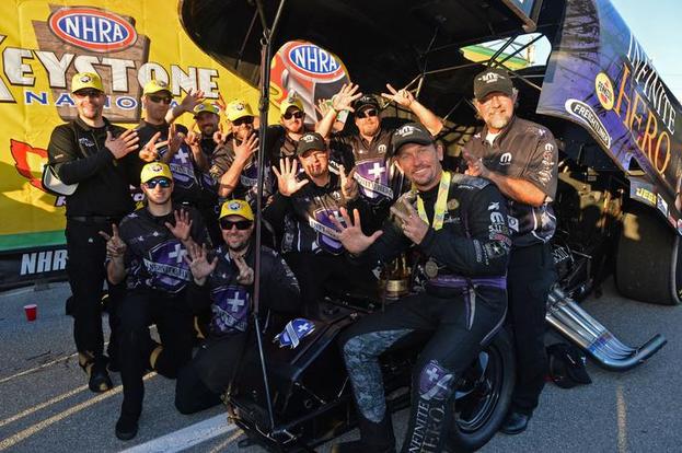 Download Print Back To Search Results Beckman Races 2015 Mopar Dodge Charger R/T to National Record Run and Holeshot Win at NHRA Keystone Nationals Jack Beckman and 2015 Mopar Dodge Charger R/T earn national title at the 31st annual National Hot Rod Association (NHRA) Keystone Nationals with a holeshot win Beckman drives 2015 Dodge Charger R/T to another national record run at 3.897 seconds in the semi-finals against teammate Ron Capps Beckman’s seventh title win of the year and bonus earned for the national elapsed time record puts him second in NHRA “Countdown to the Championship” and within 16 points of the lead Beckman’s 22nd career victory was the 15th Funny Car title for Don Schumacher Racing with the 2015 Dodge Charger R/T in 21 national events this year All four DSR Mopar drivers remain in the top-five positions to battle for Funny Car world championship with three playoff events left Allen Johnson and Magneti Marelli HEMI®-powered Dodge Dart still in contention with fifth place position in Pro Stock standings despite first round loss October 4, 2015 , Mohnton, Pennsylvania - A dramatic holeshot victory by Don Schumacher Racing (DSR) pilot Jack Beckman aboard his 2015 Dodge Charger R/T Funny Car in the final elimination round of the 31st annual National Hot Rod Association (NHRA) Keystone Nationals, the third of six “Countdown to the Championship” playoff events, brought to a close a challenging race day that saw the Mopar driver set a national elapsed time (e.t.) record, and earn a career-best seventh title this season. The win was also the 15th Funny Car title for DSR with the new 2015 Mopar Dodge Charger R/T since it made its debut 21 national events ago. “On behalf of everyone at Mopar I would like to congratulate Jack Beckman on his seventh victory this year and an important playoff win,” said Pietro Gorlier, President and CEO — Mopar Brand Service, Parts and Customer Care, FCA. “To see Don Schumacher’s team take the 2015 Mopar Dodge Charger R/T Funny Car to the winner’s circle for a 15th time this year and battle for another championship is a testament to the amount of time, investment and hard work that has gone in to building this fantastic and competitive new vehicle.” After wet weather and cold temperatures limited competitors to just one qualifying session in preparation for eliminations, Sunday’s first two rounds were made even more challenging by track conditions dipping into the low 60 degree Fahrenheit range and resulted in an unusual amount of pedal-fests; a battle between racers to regain traction by lifting on and off the throttle in an attempt to reach the finish line first. Seeded third, Beckman began his drive for the Wally trophy by winning such a pedal-fest against Alexis DeJoria with a 6.625-second elapsed time run at 254.90 miles per hour against his competitor’s 7.468/122.56 effort. He then won an all-Mopar quarterfinal fight against teammate Tommy Johnson Jr. with a 3-second run. The sun finally peaked out behind the clouds for Beckman’s semifinal match-up with his other DSR stablemate, No. 2 qualifier Ron Capps, where fans were treated to never before seen 3.897-second run (326.87 mph) to reset the NHRA Funny Car national record and earn a 20-point bonus. It is the third time this year that Beckman has reset the record after lowering the bar at Sonoma Raceway and Brainerd International Raceway. Beckman went on to earn his 22nd career title on a holeshot against Chad Head in the final elimination with a 0.077-second reaction time and 3.910/326.79 pass to his opponents 0.115 start and 3.903/326.16 lap. It was his third consecutive 3-second run and it marked the 58th time that the new 2015 Mopar Dodge Charger R/T has powered its way to sub four-second pass since its debut and the 70th time a Dodge Funny Car has done it since Matt Hagan broke the barrier in 2011. “When we got out here to qualify yesterday, it was horrible,” said Beckman. “We ran a 5.44 and qualified third. Then we go out there first round and run a 6.62 and it turns on the win light. But you can’t give (crew chiefs) Jimmy (Prock) John (Medlen) and Chris (Cunningham) too many shots at the racetrack. We went on to run 3.925, 3.897 and 3.91 second passes. They got us the win. They got us the national record. It was as good a weekend as we could have hoped to have.” With the trip to the winner’s circle at Maple Grove Raceway, Beckman moves into second place in the playoff standings and within 16 points of the lead in the Countdown. “We went from a nine round lead over Matt Hagan to a six round behind Del Worsham wondering how the wheels fell off of our Infinite Hero Dodge,” Beckman said. “People asked what we would do different and I said “nothing”. We would be idiots not to look at what bit us in Charlotte and what went wrong in St. Louis but why would we change the set up on the most successful Funny Car this season and maybe in the last 20 years? We just had to figure it out.” All four DSR Mopar drivers remain in the top-five positions to battle for the NHRA Funny Car world championship with three playoff events left. Johnson Jr. played a big part in helping to cut down the deficit to the top spot when he won a marquis first round match-up against the winner of the first two Countdown races and points leader Del Worsham with a 3.944/324.44 to a 4.799/208.39 pass. “Extremely harsh conditions and a rough weekend for everybody but to win a big first round like that and keep the points leader from running away gave not only ourselves but everyone else in the Funny Car class a shot at keeping this thing alive,” said Johnson Jr. who lost to Beckman in the next round and sits fourth in points. “The track is so tricky and it was starting to shake and a lot of cars did that round. It is frustrating when we could of have a great weekend but at the same time, it will make the points chase really interesting now.” The Keystone Nationals d