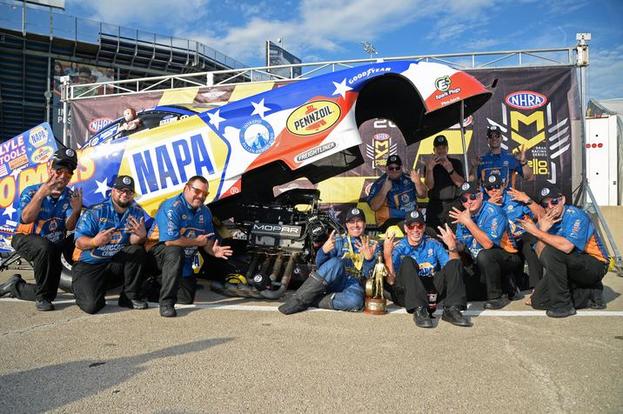 Download Print Capps Wins All-Mopar Funny Car Final in Dodge Charger R/T at NHRA Route 66 Nationals Ron Capps wins 20th annual NHRA Route 66 Nationals at Route 66 Raceway in Joliet, Illinois, over Mopar teammate Tommy Johnson Jr. Win is 55th of Capps’ Funny Car career A Mopar HEMI®-powered Dodge Charger R/T Funny Car from Don Schumacher Racing (DSR) wins 10th race in a row and for 12th time in 13 events to date this season Mopar teammates compete in Funny Car final for sixth time in 2017 Three Mopar Dodge Funny Cars advance to semifinals, five appear in second round Leah Pritchett advances to second round in Papa John’s Pizza/Mopar Pennzoil Top Fuel dragster Mopar holds top three spots in Funny Car point standings, second and fourth positions in Top Fuel Justin Picillo goes to final round of Stock Eliminator, Dan Zrust drives to Super Stock semis Picillo and Zrust win Dodge Top Finisher award in respective categories July 9, 2017 , Joliet, Ill. - Mopar driver Ron Capps continued his dream season during the NHRA Route 66 Nationals this weekend, picking up his sixth win of 2017 in his Dodge Charger R/T Funny Car as the NHRA Mello Yello Drag Racing Series schedule kicked off its second half. Funny Cars featuring Mopar HEMI® power from Don Schumacher Racing (DSR) have now won an amazing 12 of 13 events this year and 10 in a row. Mopar has also now claimed wins in 14 consecutive events across the Funny Car or Top Fuel categories, dating back to last year’s NHRA Finals at Pomona. In addition, John Force is the only non-Mopar driver to have won an NHRA Funny Car event since last September’s U.S. Nationals. Yet despite the team’s success, it was an emotional weekend for DSR and the entire NHRA community at Route 66 Raceway as it mourned the loss of Terry Chandler. Chandler funded both DSR Mopar driver Tommy Johnson Jr.’s and teammate Jack Beckman’s teams, but put charities Make-A-Wish and the Infinite Hero Foundation on their cars as a way to give back. The beloved sponsor succumbed to brain cancer after a valiant fight earlier in the week. During Sunday’s final round at Route 66 Raceway, Capps bested his motivated teammate Johnson from the left lane with a pass of 4.026 seconds at 319.67 mph after a .059-second reaction time. Johnson made a lap of 4.047 at 319.90, but was just late on the Christmas Tree with a reaction time of .155. The win was the 55th of Capps’ career. The defending Funny Car champion has now won six of the last nine races this year, while having advanced to a total of eight final rounds on the season. He also extended his already large points lead on Sunday after improving to a staggering 35-7 record. Capps began his day by knocking out Jonnie Lindberg in round one, and then took on fellow Dodge driver Jim Campbell, who had bested No. 1 qualifier Robert Hight. Capps turned in a come-from-behind, second-round win against Campbell, getting away first but with a cylinder out at the hit of the throttle. He lost ground but came back to defeat his opponent when Campbell lost traction at half-track. Capps then beat teammate Matt Hagan on a clean, side-by-side run to reach the final round against Johnson. Tommy Johnson Jr. and the Make-A-Wish Dodge Charger R/T team first dispatched of John Force on a clean pass as the 16-time champion smoked his tires and lost traction. Johnson then improved his record to 3-0 against J.R. Todd with a solid lap to set up a semifinal matchup with Tim Wilkerson, where Johnson advanced to the final on another textbook run as Wilkerson immediately went up in smoke. Three DSR Funny Cars reached the semis, with Matt Hagan ending up the odd man out. Hagan drove his Mopar Express Lane Dodge Charger R/T past Del Worsham despite losing cylinders to kick off his day, then took out a strong Alexis DeJoria in the second round when her car had mechanical issues. Hagan’s day came to an end, however, against teammate Capps in a close semifinal round. The final member of the DSR contingent, Jack Beckman, qualified best among his teammates with a No. 2 effort and pushed his Infinite Hero Dodge Charger R/T past fellow Dodge driver Bob Bode on a solid pass in the first round when Bode crossed the center line. Beckman next took on Wilkerson but had to pedal and lost cylinders, putting an end to his bid for two consecutive wins in 2017 and his second in a row at Route 66 Raceway. Both of the Mopar-powered Top Fuel cars from DSR meanwhile had their days ended early. No. 2 qualifier Leah Pritchett drove her Papa John’s Pizza/Mopar Pennzoil dragster past Troy Coughlin Jr. in round one when Coughlin suffered an explosion. Pritchett then struck the tires early against Antron Brown in round two, ending her day. Chicago-area native Tony Schumacher and the Mopar-powered U.S. Army Top Fuel team were upset by Blake Alexander in round one on a holeshot. The elimination rounds of the 20th annual NHRA Route 66 Nationals featured a hot, slick track leading to a number of early-round upsets. Mopar/Dodge Notes & Quotes Pietro Gorlier, Head of Parts and Service (Mopar) FCA – Global “It’s been a thrill to watch our Mopar drivers rack up coveted Wally trophies at each race thus far in the 2017 season. Congratulations to Ron Capps and his Dodge Charger R/T team on their win in the NHRA Route 66 Nationals. As the Countdown to the Championship playoffs get closer, we’re confident Mopar HEMI power has many more victories in store.” Ron Capps, NAPA Intrepid Fallen Heroes Fund Dodge Charger R/T Funny Car (No. 9 Qualifier – 3.942 seconds at 292.08 mph) Rd. 1: (.068-second reaction time, 4.005 seconds at 320.89 mph) defeated No. 8 Jonnie Lindberg (.075/4.072/321.19) Rd. 2: (.079/4.119/309.98) defeated No. 16 Jim Campbell (.106/4.432/204.60) Semis: (.075/4.038/318.84) defeated No. 4 Matt Hagan (.067/4.088/313.58) Final: (.059/4.026/319.67) defeated No. 6 Tommy Johnson Jr. (.155/4.047/319.90) “It’s been a season you can’t even dream about. It may have looked 